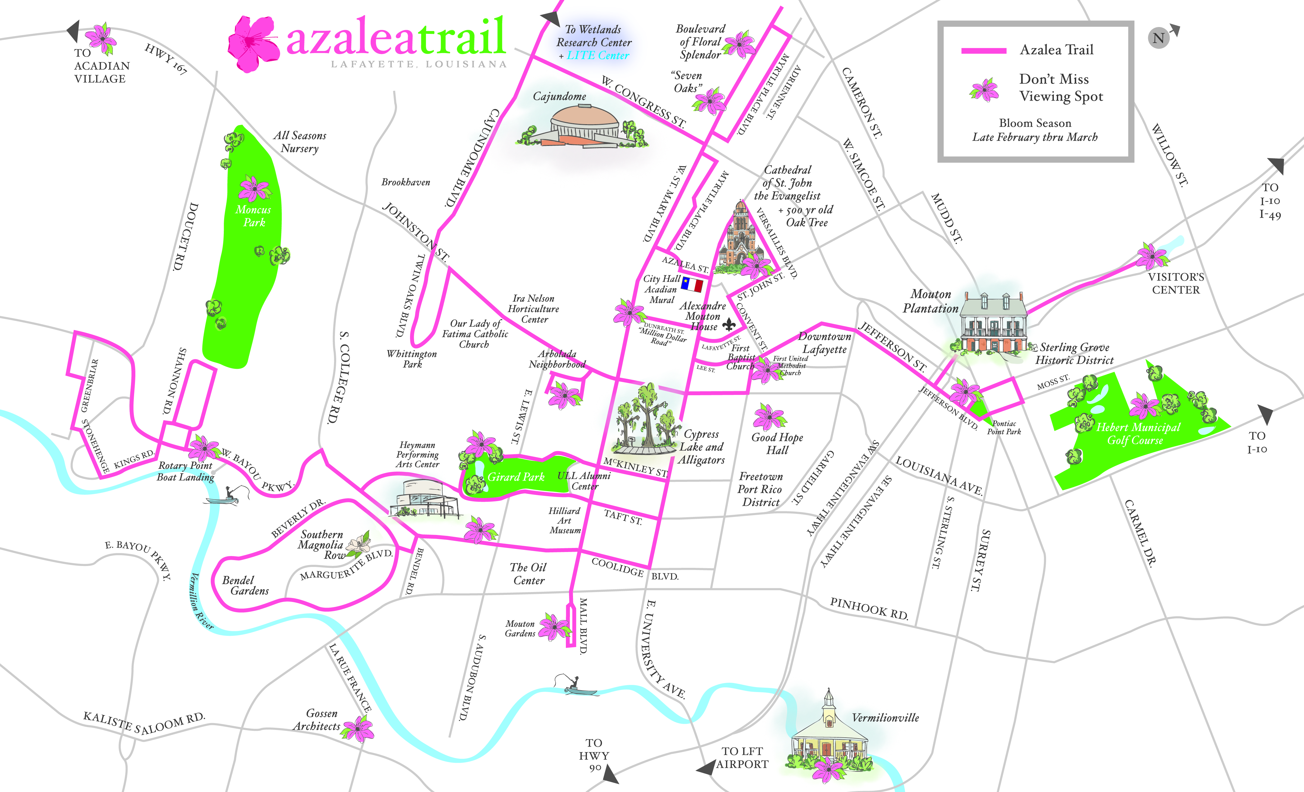 Denise Lanclos represents both the Preservation Alliance of Lafayette and the Historic Azalea Trail says, "The Azalea Trail grew to 25 miles long over the years. It traverses through historical and cultural districts throughout the city. You can see beautiful historic homes, churches, schools and museums."