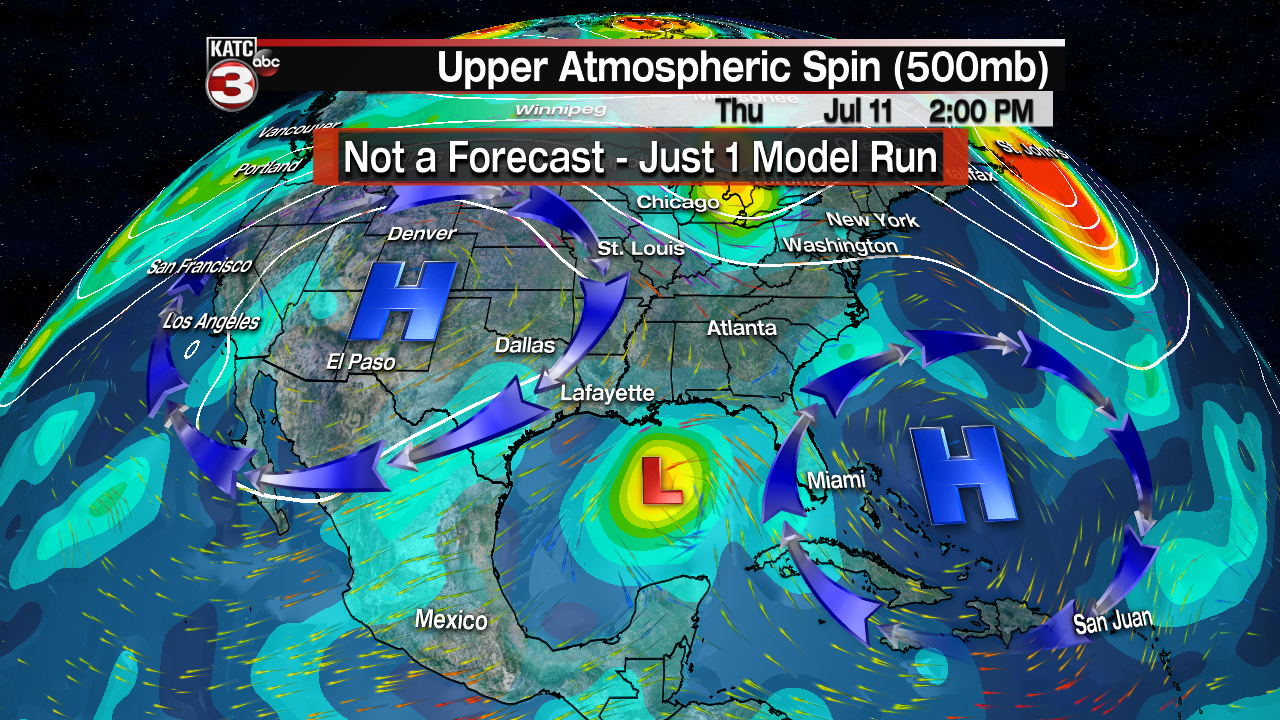 The models seem to agree that the ridge over the four corners region will be the dominant feature and steer the tropical system to the west in the Gulf moving it just south of the Louisiana coast on Friday.