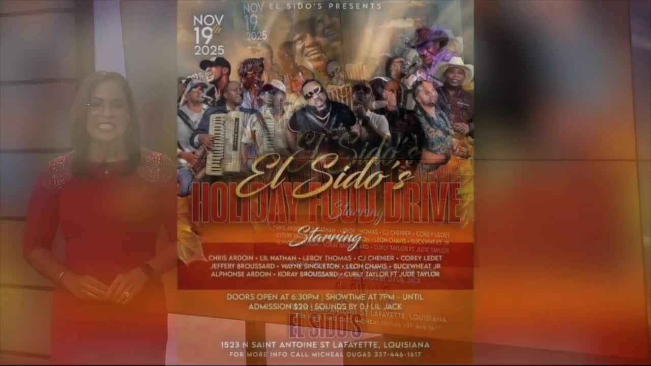 LAFAYETTE PARISH — The legacy continues at El Sido's Zydeco Club with their annual Holiday Food Drive taking place next week on Wednesday, November 19th.