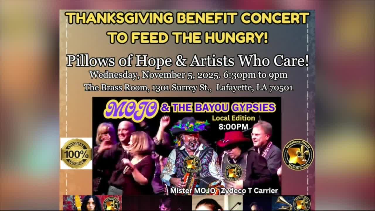 LAFAYETTE PARISH — Grammy winners and Louisiana music legends will take the stage on Wednesday, November 5, in Lafayette to help feed families in need this Thanksgiving season.