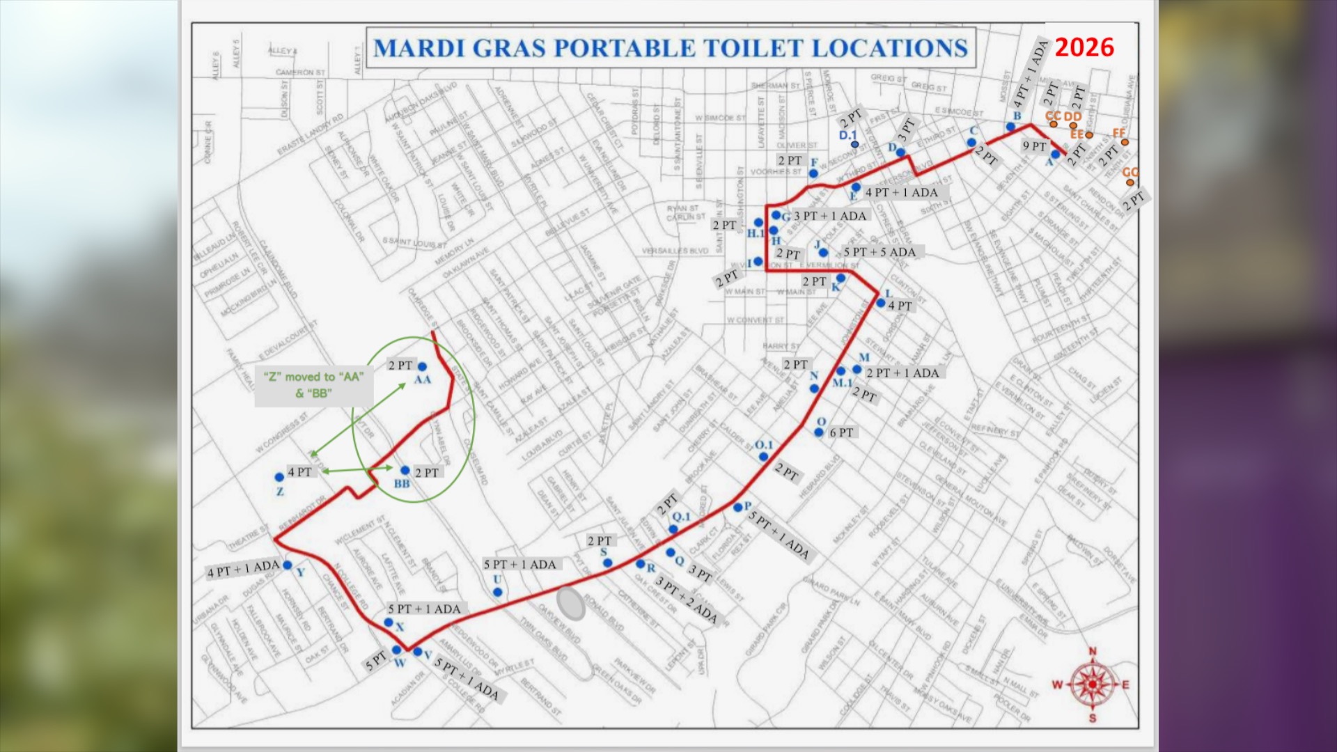 Lafayette Public Works will have more than 100 portable restrooms available along the parade routes in Lafayette.