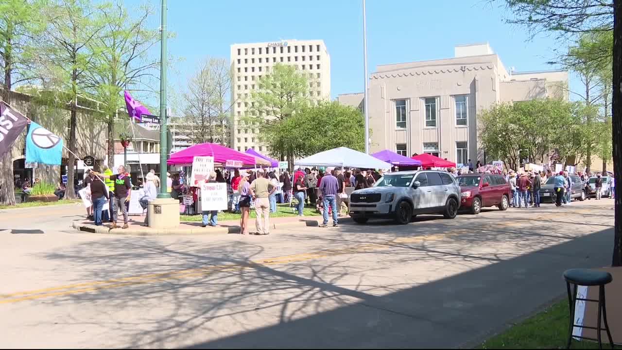 LAFAYETTE, La. — Dozens of protesters gathered Saturday in downtown Lafayette as part of the latest round of 'No Kings' demonstrations, speaking out against President Trump's policies and the war in Iran.