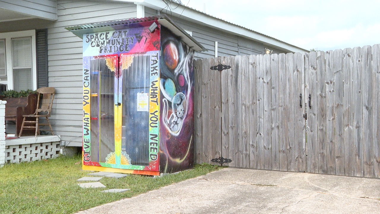 Partnering with F.O.O.D. Acadiana, Mullins built a pantry in front of his home, now known as the "Space Cat Community Fridge." The project quickly became a cornerstone for local families — especially as the recent freeze in SNAP funding continues to affect households across the region.