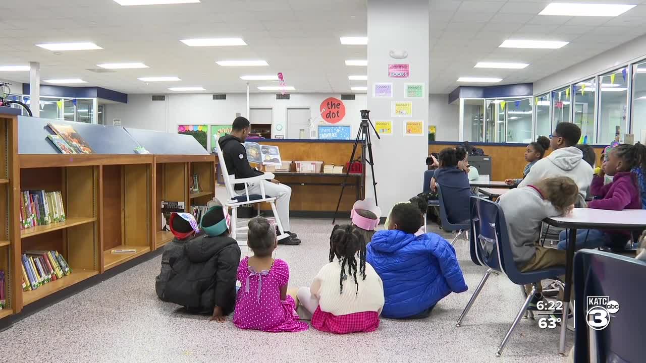 The former Ragin’ Cajuns and Baltimore Ravens cornerback spent part of his day at Alice Boucher Elementary School, reading to students and sharing pieces of his journey.