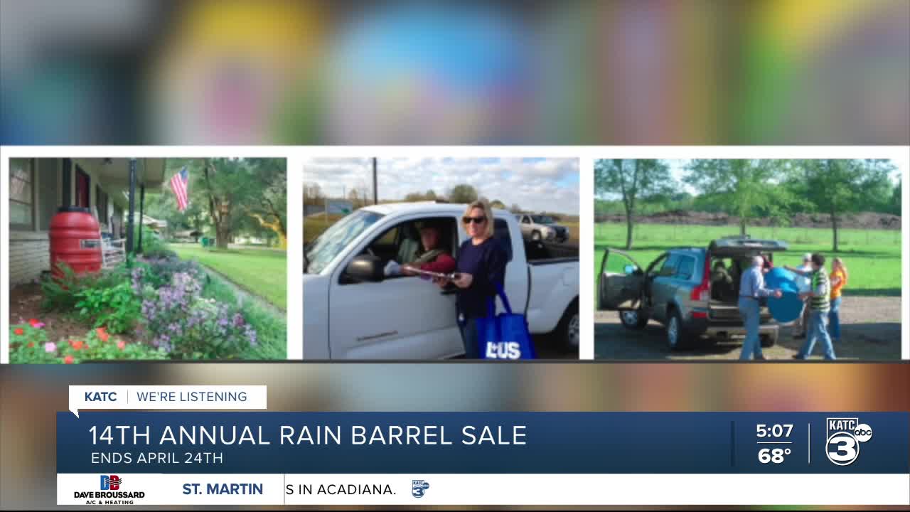 The 14th annual Rain Barrel Sale is underway in Lafayette Parish, giving residents an opportunity to support water conservation efforts and stormwater management across the Bayou Vermilion watershed. The sale runs through April 24. Residents in both city limits and unincorporated areas of the parish can purchase their first rain barrel for $44, while additional barrels are priced at $59. Officials say the program encourages environmentally friendly practices aimed at reducing runoff and protecting local waterways.