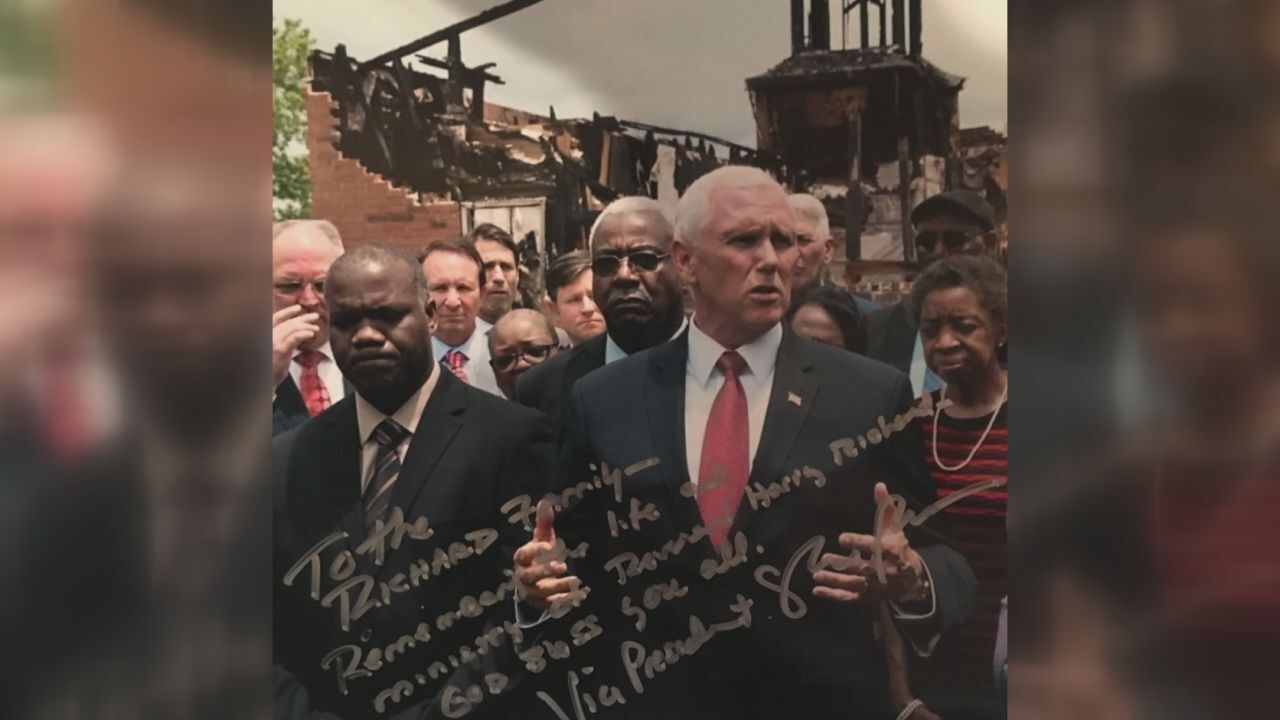 During this morning's service at the church, Richard's widow was surprised with a letter from Pence. The Vice President met Richard last year when he visited all three churches not long after the fires.