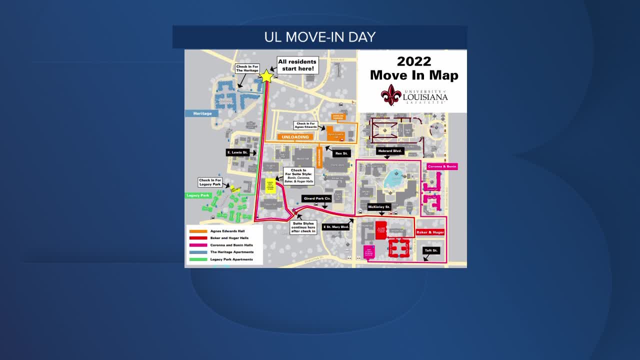 Students near and far are heading to Lafayette for move-in day! Each student was given an appointment time for unloading, and staff at UL are asking parents and students to follow that appointment.