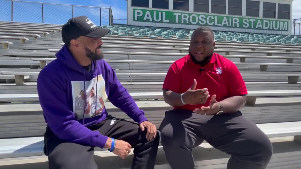 Standing near the same bleachers where he once watched games as a child, Derousselle reflected on the impact those moments had on his life.