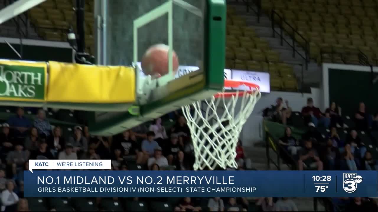 HAMMOND — Avery Courmoyer scored 21 points to lead Merryville to a 49–46 victory over Midland on Friday in the Division IV Non-Select title game.