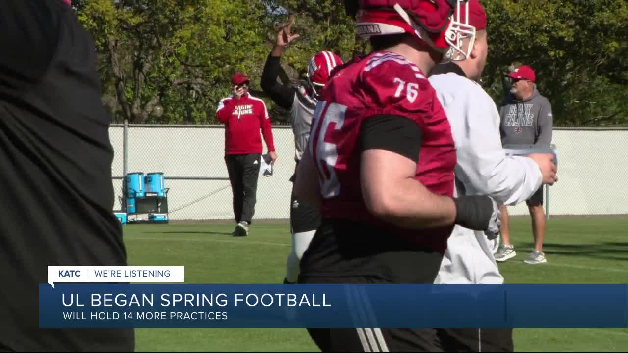 UL held its first spring football practice Tuesday, beginning a 15-session slate that will culminate with the annual Vermilion and White Game on April 25. The Cajuns open the regular season Sept. 5 against Lamar.