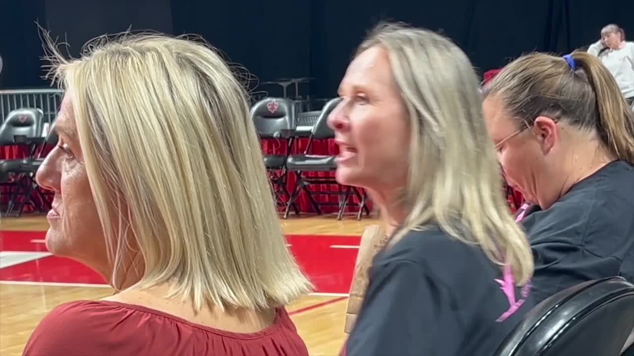 Before tipoff, the team heard from survivor Mandy Henry, who shared her journey after being diagnosed with stage four breast cancer in 2020. Henry underwent multiple surgeries, including two reconstructions, and has been in remission since 2023.