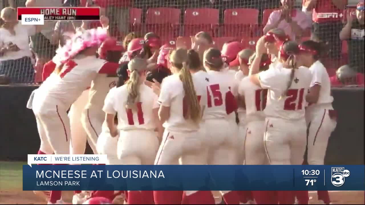 Louisiana (20-13) jumped out early, scoring three runs in the first inning. Hart opened the scoring with a solo home run before Brooke Otto added a two-run shot later in the frame.