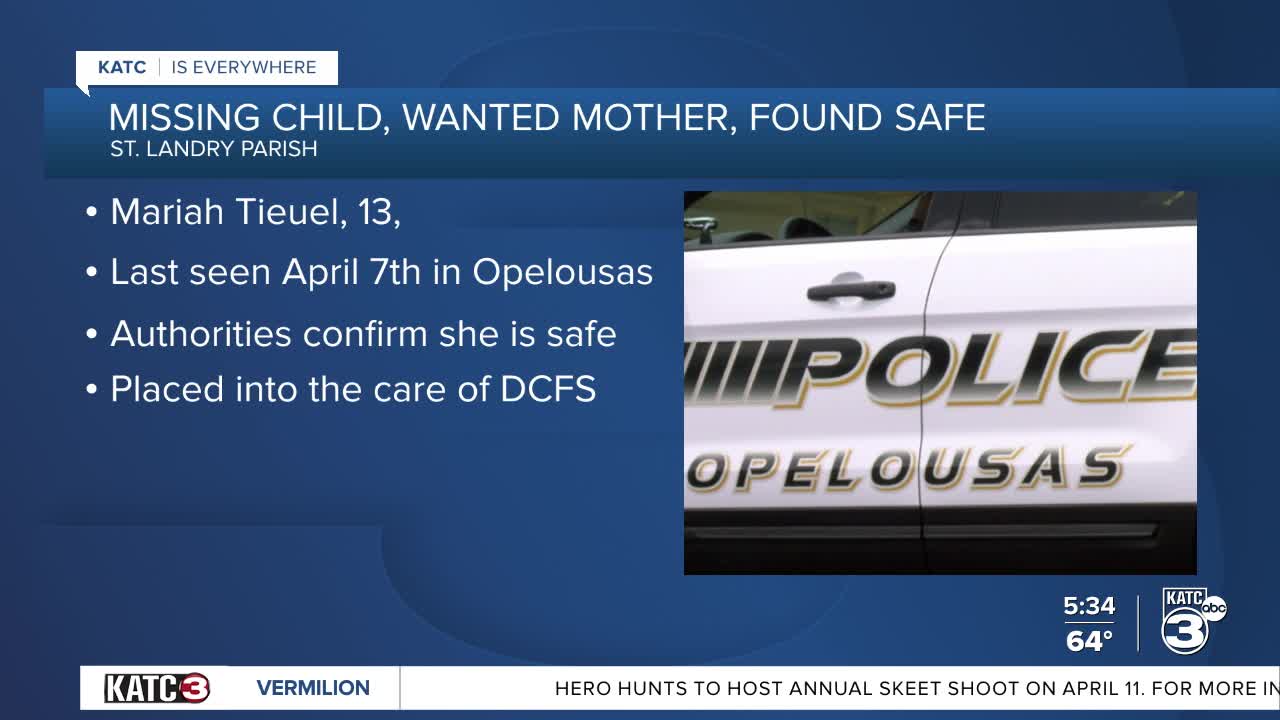 Earlier in the evening on April 14th, the juvenile and her mother came to the Opelousas Police Department. The juvenile has since been placed into the care of DCFS and is safe.