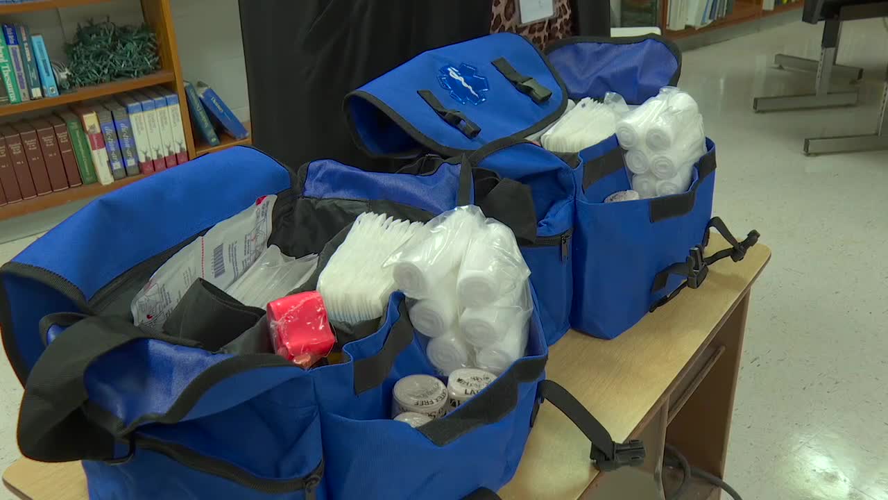 Tuesday morning, students and teachers took part in a hands-on training session to learn how to use emergency first aid kits in case of an accident or life-threatening situation.