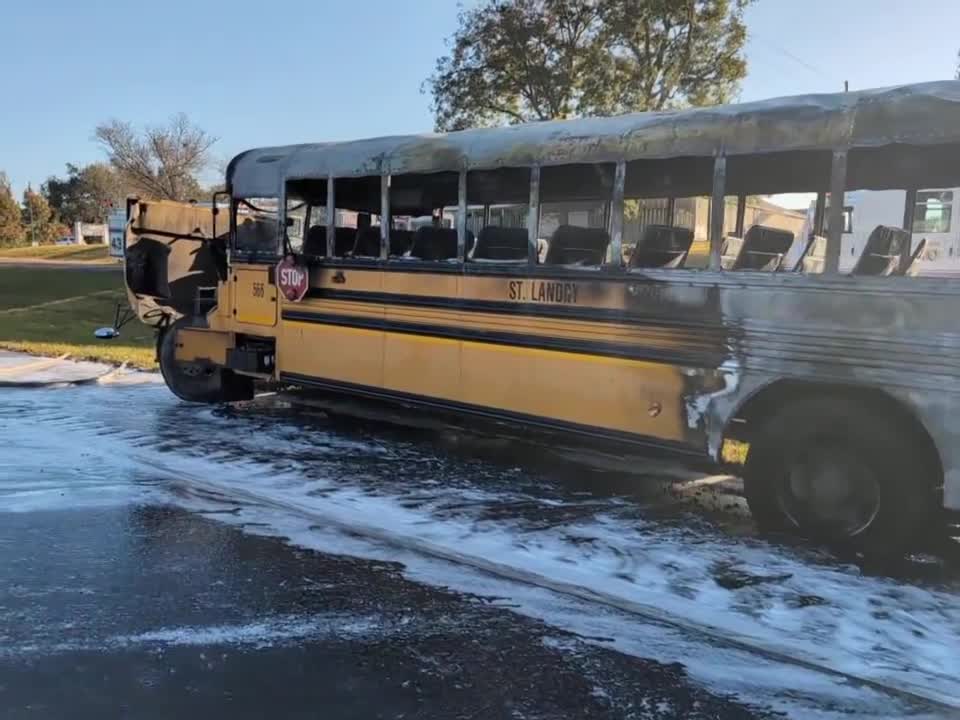 "A fire broke out on one of our St. Landry Parish School Board buses this morning due to a tire blowout. The bus had no students onboard, and the driver was able to exit the bus safely."