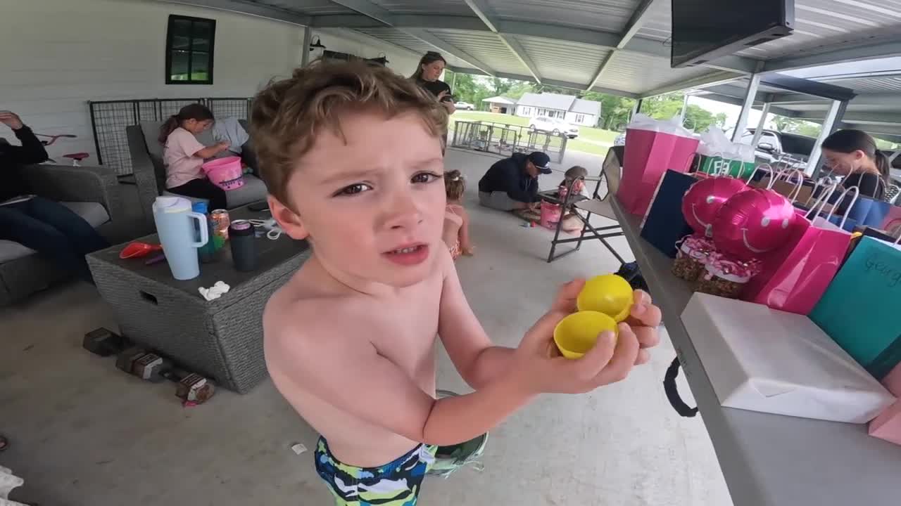 Eggs were hidden all across the yard — tucked inside shoes, placed behind footballs and even set on top of a trampoline — creating the perfect challenge for eager kids ready to hunt.
