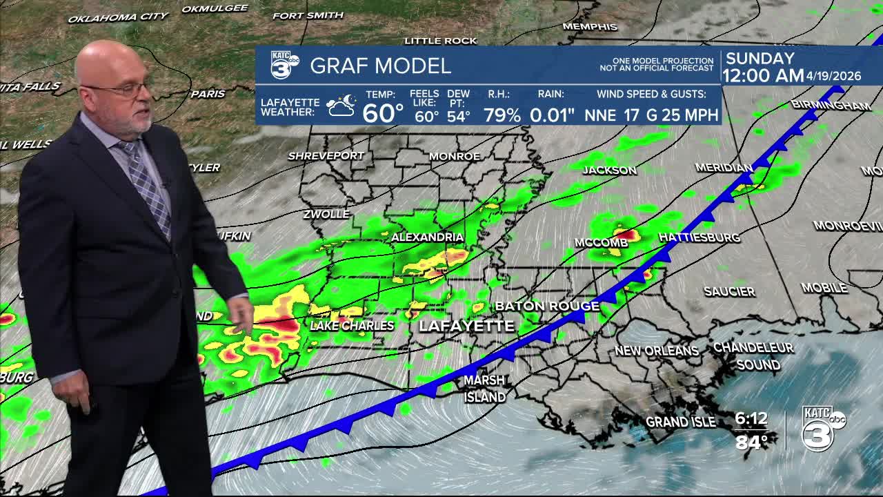 We're still forecasting a cold front to arrive Saturday night, bringing along some showers and a few isolated thunderstorms. While severe weather isn’t anticipated, we could see a strong storm or two pop up.