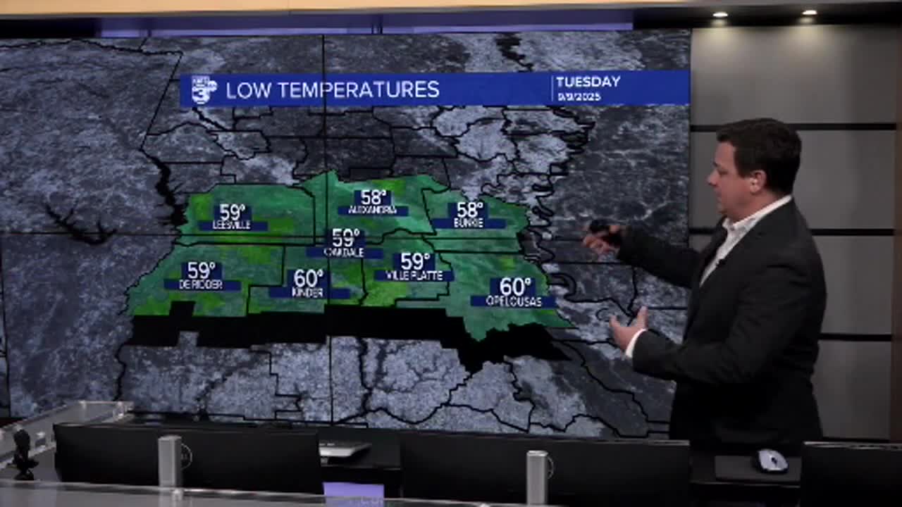 We've got lows Monday expected to drop into the low 60s for Tuesday morning.