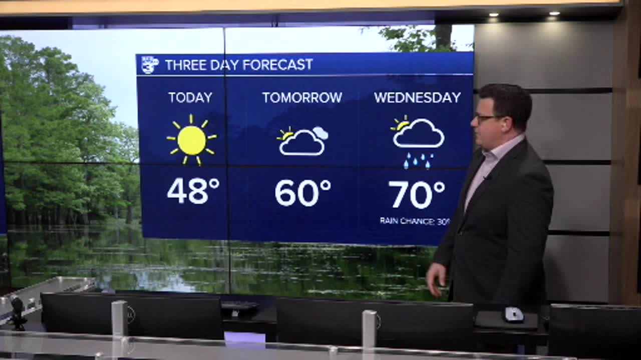Clear skies will allow another night down below freezing going into Tuesday but we'll start to warm up by the middle of the week.