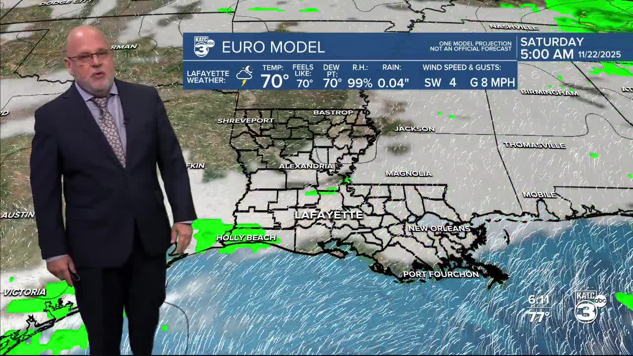 Acadiana remains in the same pattern for now, with mild nights ahead, areas of fog by morning, followed by very warm afternoons through Thursday.