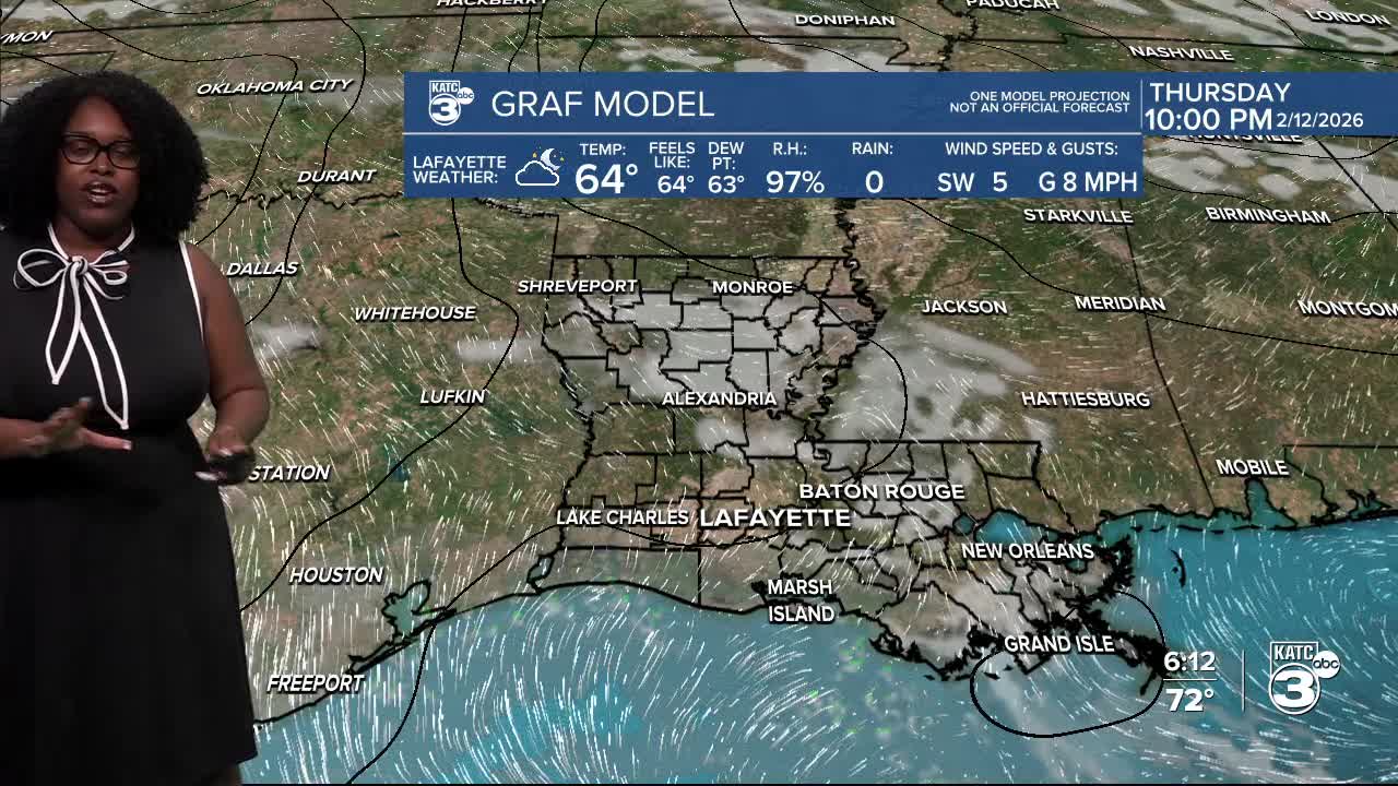 Be cautious of potential ponding on the roads. Acadiana is currently not under a marginal (1/4) risk for flash flooding, but Central Louisiana is.