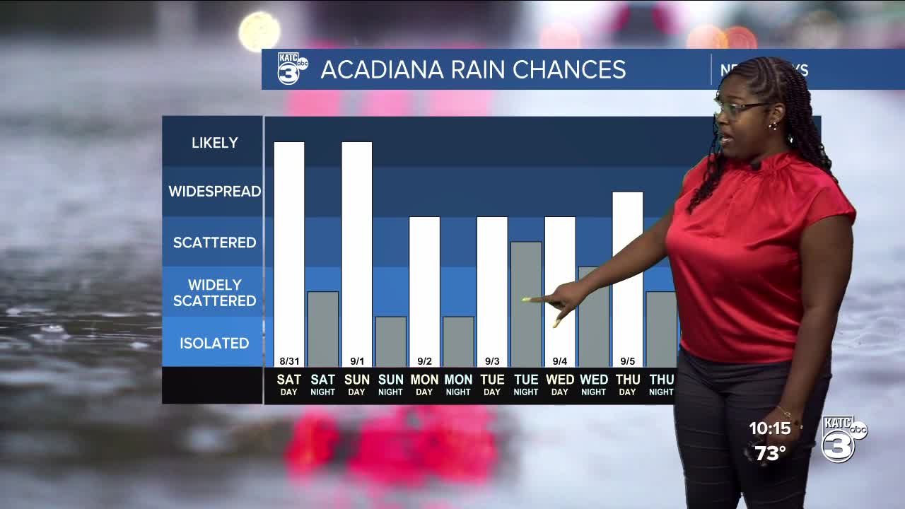 The moisture that had been piling up in Acadiana finally gave way to showers and storms this week, and it seems that they aren't going anywhere anytime soon.