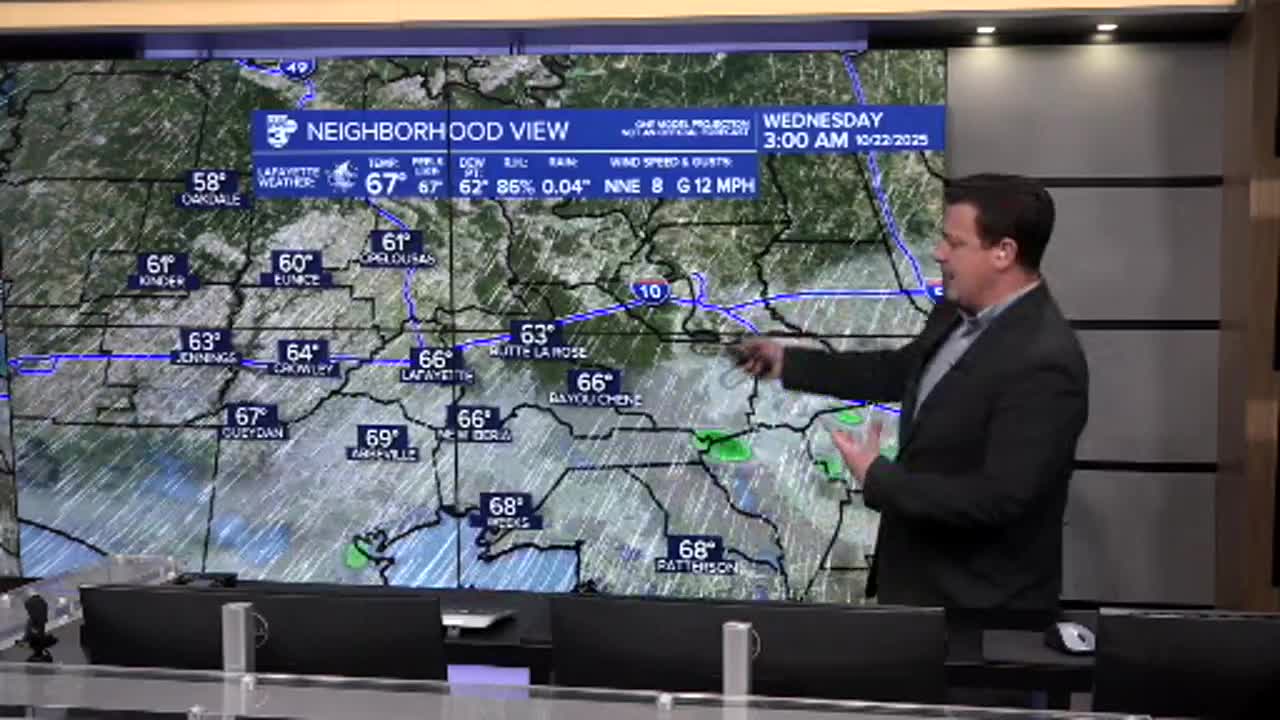 Acadiana has another weak front moving through on Tuesday which could help spark up a few spotty showers in the afternoon.