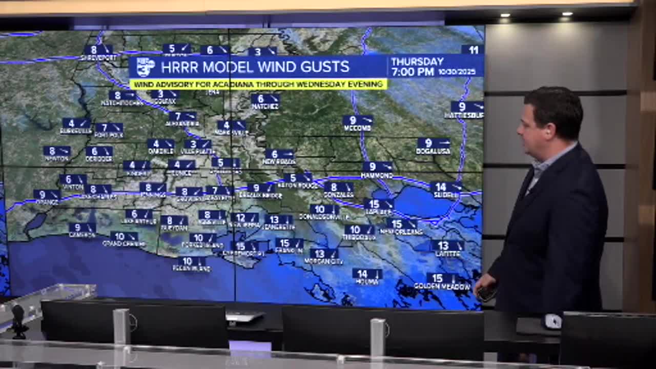 On top of that we'll have a strong wind blowing in from the north with gusts pushing 35-40, a Wind Advisory has been issued across Acadiana.