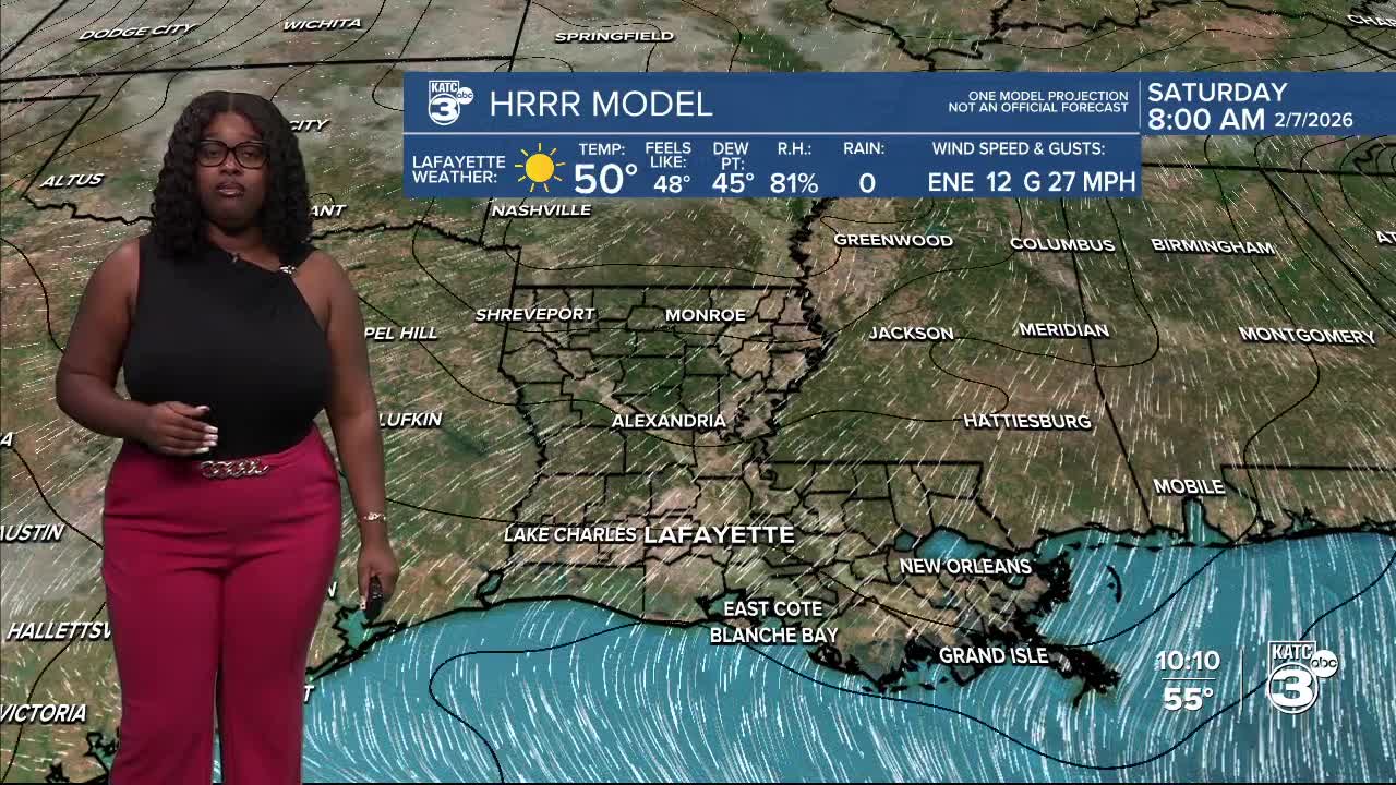 This evening promises to be a delightful one, perfect for enjoying the Krewe De Canailles Parade! After sunset, temperatures will cool down into the 50s, so grab a light jacket to stay cozy.