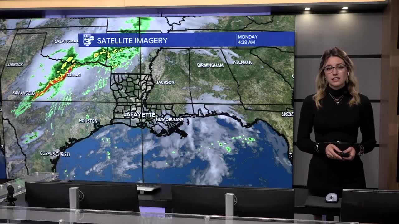 The weather pattern is about to have a big change for Acadiana and do a little flip on us as a warm front pushes into Acadiana throughout our Monday, leading to some possible isolated to scattered showers this afternoon. We warm up and get a bit more muggy as the day goes on, with an expected high of around 80 degrees, setting us up for the chance for some strong to severe isolated storms on Tuesday as a strong cold front makes it way across Louisiana.